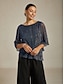 女性用 ブラウス ドレッシーなトップス ゆったりとしたトップス シフォントップス エレガント ヴィンテージ スタイリッシュ 七分袖 クルーネック ボートネック ワーク 日常 デートの夜の服装 スパンコール プリーツ パッチワーク ネイビーブルー 春 秋