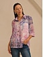 レディースブラウス ライトパープル ボヘミアンコンビネーションプリント シャツカラーフロントフェイクプラケット カジュアル バケーション 旅行 春 秋