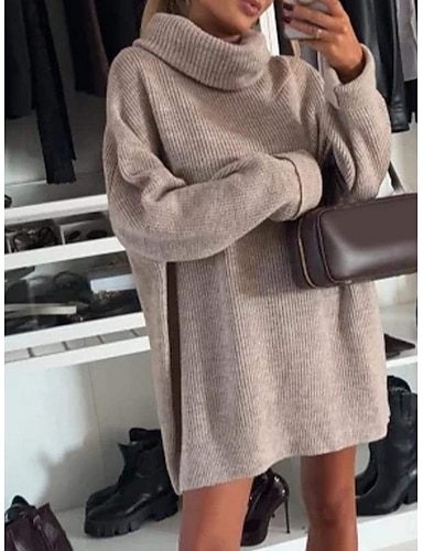 女性用 セータードレス 日常 スタイリッシュ ベーシック ピュアカラー リブ タートルネック ニット 長袖 レギュラートップス ニット アウトドア 日常 ブラック ホワイト 秋 冬