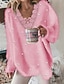 女性用 ファジー 居心地の良い リブニット パール装飾 平織り カジュアル 長袖 Vネック レギュラートップス 日常 お出かけ 週末 レース ピンク 秋 冬