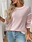 レディース プルオーバー スウェットシャツ ふわふわ 着心地良い リブ編み ニット 無地 アクティブ ファッション ストリートウェア 長袖 クルーネック レギュラートップス ストリート デイリーウェア カジュアル パッチワーク ライトピンク 春 秋