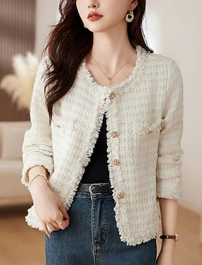女性用 カジュアルジャケット 快適 ジャカード ボタン エレガント ファッション 屋外 平織り お出かけ カジュアル/普段着 週末 カーディガン レギュラー Vネック レギュラー 長袖 アウターウェア ブラック ピンク ブラウン 春 秋
