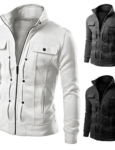男性用 冬物ジャケット 冬物コート カジュアル 日常 防風 ライトウェイト ポケット モダンスタイル 秋 冬 純色 スポーツ カジュアル 折襟 レギュラー レギュラー ブラック ホワイト ライトグレー ダックグレー コーヒー ジャケット