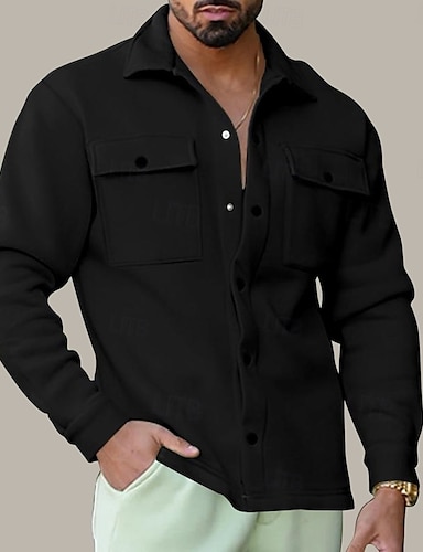 男性用 冬物ジャケット コーデュロイジャケット フリースの上着 カーゴジャケット バケーション 日常 保温 ポケット フリース 冬 平織り ファッション ストリートファッション ラペル レギュラー ブラック ブラウン コーヒー ジャケット