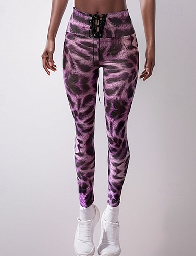 女性用 ピラティスレギンス フィットネスパンツ ジム用レギンス ポケット 印紙税 サイドポケット ピラティス ジム ジムトレーニング パンツ サイクリングタイツ レギンス アニマル柄 ピンク パープル 褐色 スポーツ アクティブウェア 伸縮性あり タイトフィット