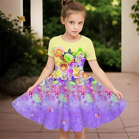 女子 3D グラフィック ドレス 半袖 夏 春 バケーション 日常 祝日 プリンセス 美しい 甘い 子供 4〜12年 カジュアルドレス A ラインドレス 膝丈 レギュラー