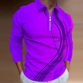 男性用 幾何学模様 ジップポロシャツ ゴルフシャツ 長袖 ポロシャツ 襟付きシャツ ビジネスカジュアル バケーションウェア フォーマルウェア フェスティバルウェア 3Dプリント クォータージップポロ イエロー ブルー パープル