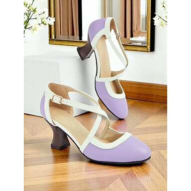 女性用光沢のある紫色のパテントレザーのメリージェーンヒール - 1950年代のレトロなブロックヒールパンプス。アンクルストラップ付き。ヴィンテージパーティー、結婚式、プロムに最適。