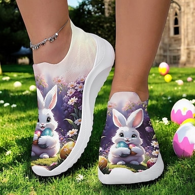 イースターバニープリントのスリッポンスニーカー - 女性用の軽量で通気性のあるウォーキングシューズ、かわいいホリデーシューズ