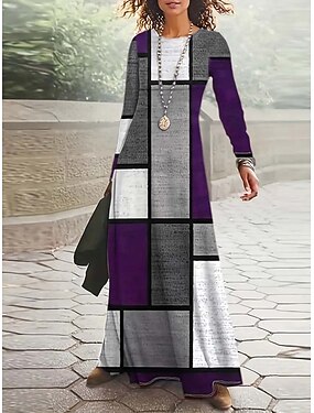 女性用 マキシドレス シースドレス T シャツドレス 旅行度假风 カジュアル ボヘミアン 祝日 デート レギュラー グラフィック 幾何学模様 抽象的 長袖 クルーネック ブルー パープル グリーン 春 秋 冬