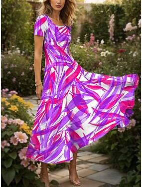 女性用 ミディドレス シースドレス ボディコンドレス フォーマル ボヘミアン 日常 レギュラー オンブル’ グラフィック 半袖 クルーネック パープル 夏 春