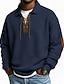 男性用 ワッフルTシャツ Tシャツ 長袖 折襟 レースアップネック 秋 秋冬 純色 テクスチャード加工 ヴィンテージ風 カジュアル パッチワーク カラーブロック アウトドア 家 スポーツ ネイビーブルー パープル グリーン メンズトップTシャツ