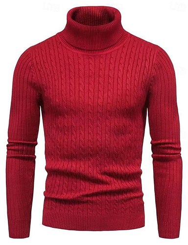 男性用 タートルネックセーター プルオーバーセーター リブ ニット レギュラー ニット スリムフィット 平織り タートルネック 現代コンテンポラリー ワーク デイリーウェア 衣類 冬 春 & 秋 ブラック ホワイト M L XL