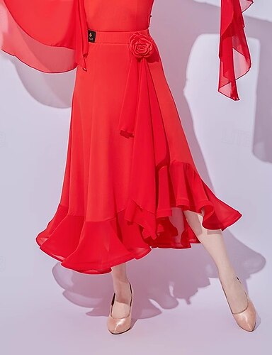 ボールルームダンス スカート ピュアカラー スプライシング 女性用 性能 訓練 メッシュ プロミックス
