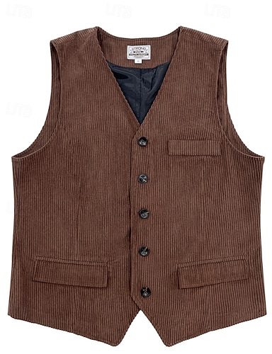 男性用 ベスト チョッキ ジレ バケーション パーティー ビジネス ファッション カジュアル 春 秋 ボタン ポケット ポリエステル コーデュロイ 快適 純色 シングルブレスト 一つボタン Vネック レギュラー ダークブラウン ブラック ネイビーブルー アーミーグリーン ベスト