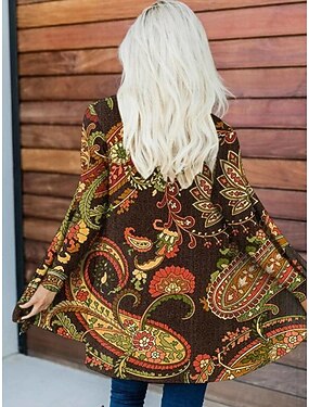 女性用 カジュアルジャケット 保温 快適 不規則な裾 オープンフロント エレガント ヴィンテージ ファッション 近代の フラワー ストリート カジュアル アスレイジャー 日常 ロング ノーカラー レギュラー 長袖 アウターウェア ブラック ブラウン コーヒー 秋