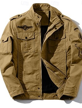男性用 グラフィック 星形 カーゴジャケット ウィンドブレーカー ミリタリージャケット 実践的 カジュアル アウトドア キャンピング&ハイキング 刺繍 サイドポケット ジップフロント 秋 冬 スタンド 長袖 アーミーグリーン