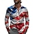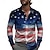 男性用 アメリカの国旗 シャツ カジュアルシャツ ビーチシャツ 長袖 カジュアル 快適 バケーション ストリート ハワイアン 春 秋 ラペル プリント ルビーレッド ロイヤルブルー ブルー ライトブルー