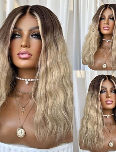 ブラジル産レミー人毛オンブルグルーレス 5x5 レース留めウィッグ ショートボブ ウェーブ 13x4 レースフロントウィッグ アッシュブロンド人毛ウィッグ ベビーヘア付き ナチュラルヘアライン 女性用