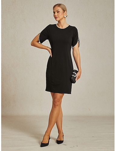 女性用 ミニドレス シースドレス エレガント 結婚式のゲスト パーティー カクテルパーティー 純色 半袖 クルーネック ブラック 夏 春 秋