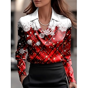 クリスマス 女性用 ワークシャツ グラフィック チェック スノーフレーク柄 エレガント ヴィンテージ トロピカル風 長袖 シャツカラー レギュラートップス ワーク パーティーイブニングウェア 日常 ルビーレッド ブルー パープル オレンジ グリーン 秋 冬 春、夏、秋、冬