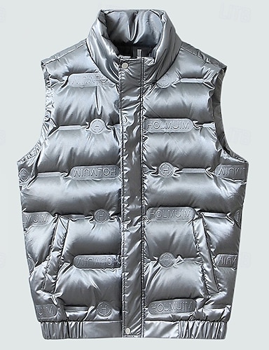 男性用 パファーベスト ベスト ジレ バケーション 日常 デート ファッション カジュアル 冬 ポケット ポリエステル 保温 快適 純色 ジッパ- スタンド レギュラー ブラック グレー ベスト