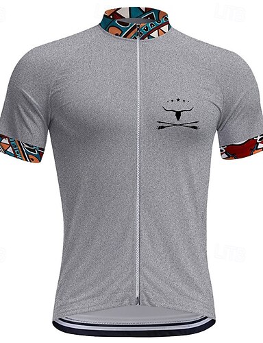 男性用 サイクリングジャージー グラフィック 幾何学模様 半袖 バイク ジャージー トップス 3つのリアポケット付き UV耐性 速乾性 フロントファスナー 反射性ストリップ スポーツ カーキ色 衣類