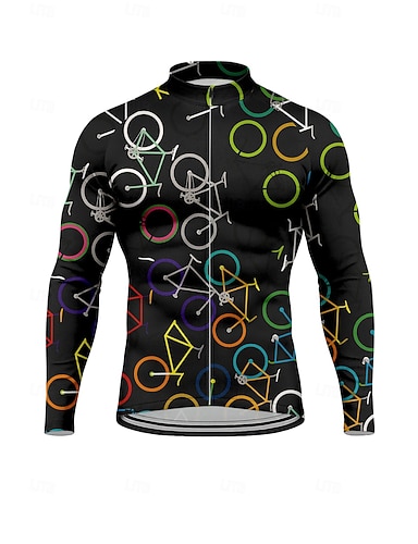 男性用 トップス サイクリングジャージー グラフィック 幾何学模様 バイク 長袖 バイク ジャージー トップス 3つのリアポケット付き サンケア 日焼け防止 サンスクリーン 速乾性 スポーツ ブラック 衣類