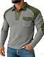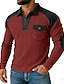 男性用 ワッフルポロシャツ ジップポロ ストリート カジュアル ファスナー ラペル 長袖 ファッション ベーシック カラーブロック パッチワーク ポケット 秋 春 & 秋 オールシーズン レギュラー ワイン ブラック ダークブルー グレー ワッフルポロシャツ