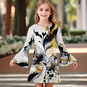 女子 3D グラフィック ドレス 長袖 夏 春 バケーション 日常 祝日 プリンセス 美しい 甘い 子供 4〜12年 カジュアルドレス A ラインドレス 膝丈 レギュラー