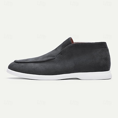 メンズ グレー フェイクスエード スリッポン ローファー、ホワイトソールのミニマリスト カジュアル シューズ - 毎日履ける万能で快適な履物