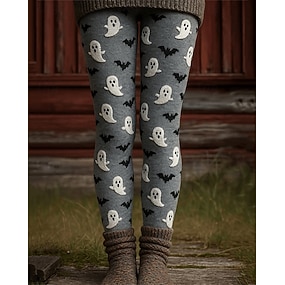 女性用 パンツ レギンス 心地よいレギンス ストリートファッション カジュアル 全長 ハイウエストPantsHalloween グラフィック コウモリ 弾性ウエスト プリント 通気性 快適 伸縮性あり バケーション ストリート デイリーウェア グレー 夏 春 秋 レギュラー