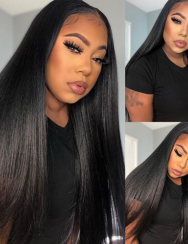 13*6 ナチュラルカラー 人毛レースウィッグ フロントレース ストレートヘアウィッグ 150% 密度 14-28インチ