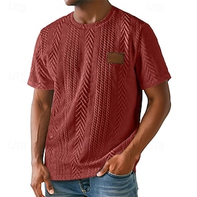 男性用 Tシャツ 半袖シャツ ティートップ 半袖 クルーネック 夏 平織り ファッション デザイナー ベーシック ジャカード バケーション ストリート お出かけ ブラック ホワイト ルビーレッド メンズトップTシャツ