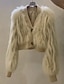 女性用 フェイクファーコート 保温 快適 ポケット ファッション カジュアル 平織り アウトドア ストリート カーディガン ショート 折襟 レギュラー 長袖 アウターウェア ブラック ホワイト ワイン 春 秋