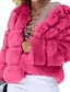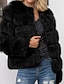 女性用 冬物コート フェイクファーコート 保温 快適 毛皮と革製品 ファッション カジュアル 平織り バケーション ストリート カジュアル デイリーウェア レギュラー クルーネック レギュラー 長袖 アウターウェア ブラック ホワイト ピンク 秋 冬