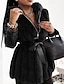 女性用 レザージャケット 冬物コート 保温 快適 毛皮の襟 ヴィンテージ カジュアル 純色 バケーション ストリート カジュアル デイリーウェア ショート Vネック レギュラー 長袖 アウターウェア ブラック 秋 冬