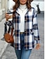 女性用 カジュアルジャケット 快適 高通気性 ポケット ボタン プリント カジュアル チェック バケーション ストリート カジュアル デイリーウェア シングルブレスト レギュラー 折襟 レギュラー 長袖 アウターウェア ブラック イエロー ブルー 春 秋