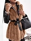 女性用 コート フェイクファーコート 保温 快適 ボタン 毛皮と革製品 カジュアル 平織り バケーション ストリート カジュアル デイリーウェア ロング 折襟 レギュラー 長袖 アウターウェア ブラウン 秋 冬