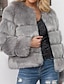 女性用 冬物コート フェイクファーコート 保温 快適 ボタン カジュアル 平織り バケーション ストリート お出かけ 週末 ショート Vネック レギュラー 長袖 アウターウェア ダックグレー アプリコット コーヒー 秋 冬