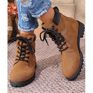 女性用の暖かいフリース裏地付きスエードアンクルブーツ - アウトドアや普段使いに最適な、快適なレースアップの冬用カジュアルシューズ