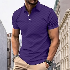 男性用 チェック ポロ 半袖 ポロシャツ 襟付きシャツ ビジネスカジュアル 学校 アウトドア デイリーウェア 3Dプリント 夏 ブルー ダークグリーン パープル
