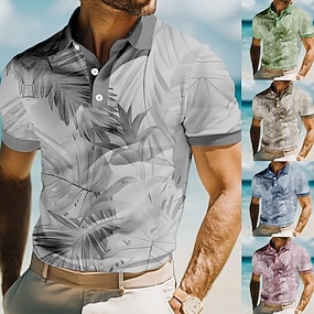 男性用 葉っぱ ポロ 半袖 ポロシャツ 襟付きシャツ リゾート デイリーウェア バケーションウェア 3Dプリント 夏 春 秋 ライトグリーン ブルー パープル