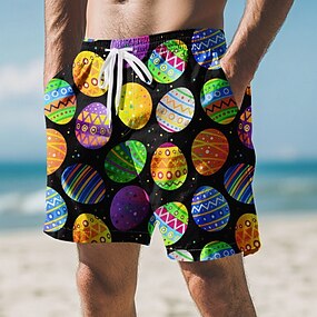 イースター 男性用 バニー イースターエッグ コサージュ スイムトランク スイムショーツ ボードショーツ ミディアムウエスト ハワイアン 祝日 祭り ドローストリング メッシュライニング 弾性ウエスト デザイナー 衣類