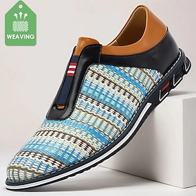 メンズのマルチカラーナイロン織りスリッポンローファー、レザートリム付き - カジュアルなお出かけにぴったりのリラックスフィット