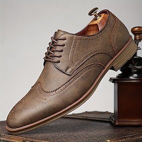 メンズブラウンフェイクレザーブローグカジュアルシューズ - ビジネスカジュアル、オフィス、セミフォーマルなイベントに最適なスマートなレースアップシューズ