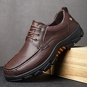メンズブラウンフェイクレザーレースアップカジュアルシューズ、オフィス、毎日の通勤、レジャーに最適な快適なウォーキングシューズ