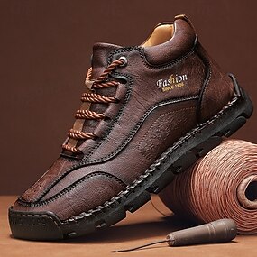 メンズブラウンハイトップカジュアルブーツ、レースアップデザイン、柔らかく快適なソール、秋、冬、日常使いに最適な耐久性のあるアウトドアウォーキングシューズ