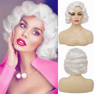 プラチナブロンドのウィッグ ショートカーリーヘア ブロンドビーハイブウィッグ クイーンコスプレ ハロウィンコスチュームウィッグ 女性用 カービナル用