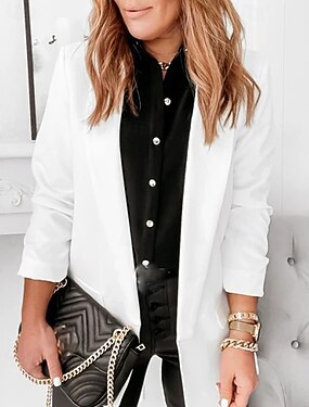 女性用 ブレザー 快適 高通気性 ポケット ボタン カジュアル 平織り オフィス ストリート カジュアル デイリーウェア シングルブレスト レギュラー 折襟 レギュラー 長袖 アウターウェア ブラック ホワイト ネイビーブルー 夏 春